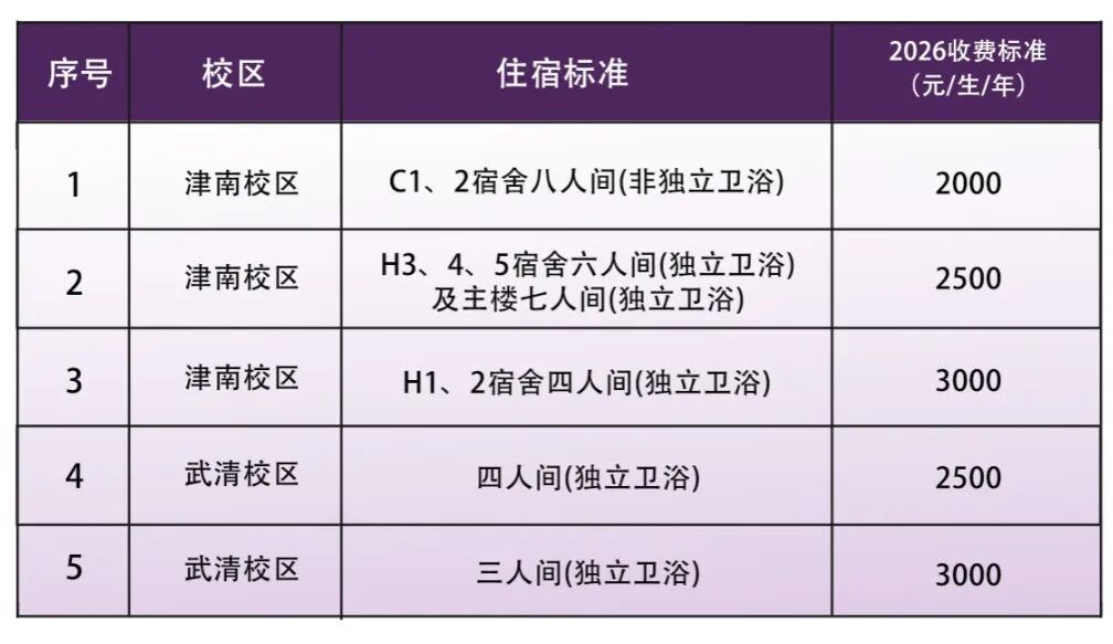 2026年新生住宿费收费标准