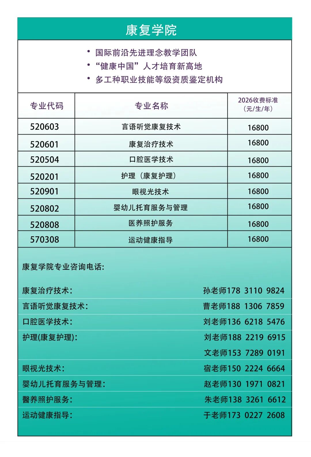 康复学院服务于国家“健康中国”的战略,聚焦民生紧缺领域,整合多方优势,构建智慧医养康护人才培养体系。探索具有中国特色的康复医学高职教育模式,培养适应社会需求的专业人才。(详情点击下方图片,了解更多康复学院信息)