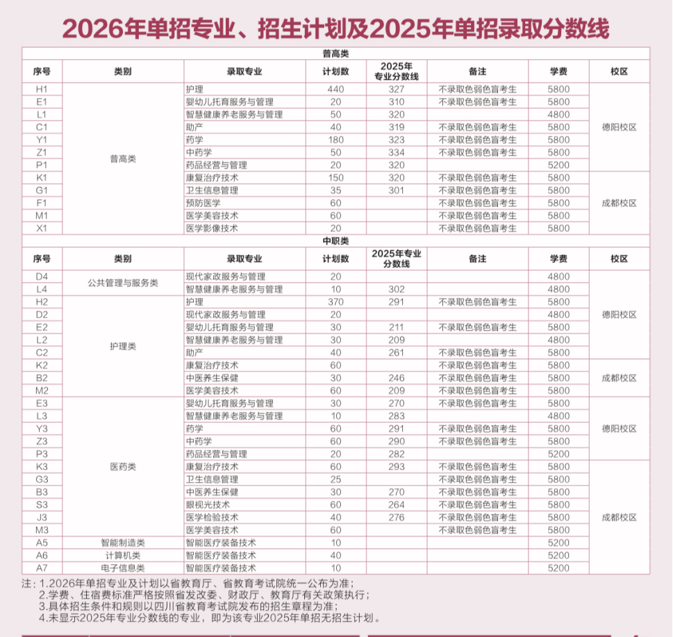 重磅! 四川护理职业学院2026年单招计划