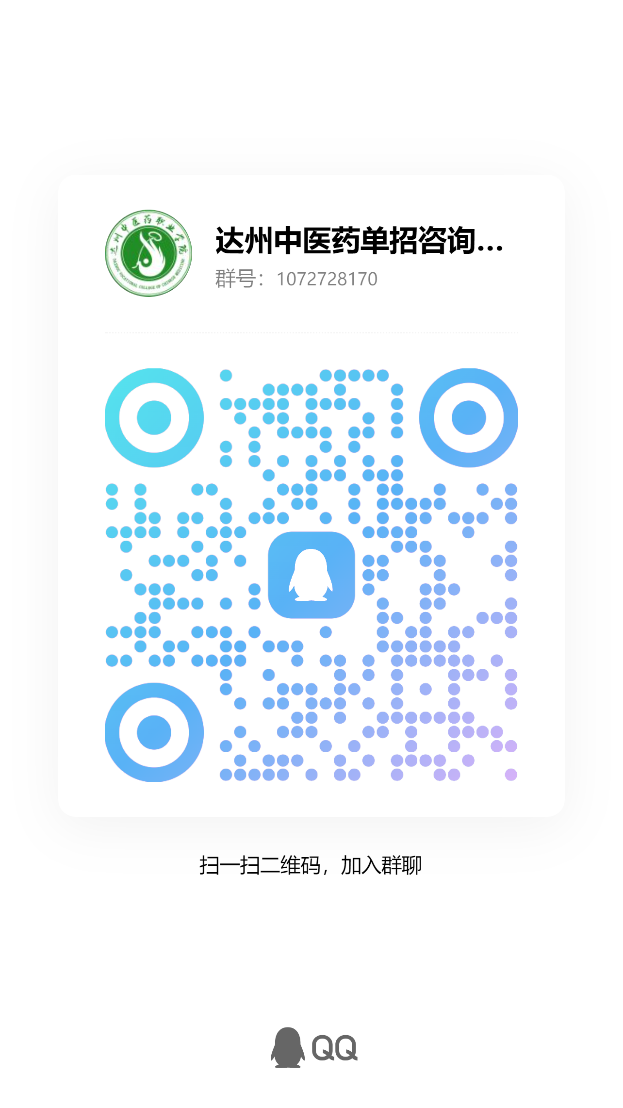 各位考生和家长: 为了更好地服务考生、家长,提供便捷、畅通、准确的报考咨询服务,学校建立了2026年高职单招qq咨询群(群1:1072728170;群2:280586544),欢迎各位考生、家长入群咨询交流,还可拨打我校招生咨询热线0818-7232166,0818-7232188。学校网址:https://www.dzvccm.edu.cn。 温馨提示: 1.学校没有委托任何中介机构有偿招生。 2.这两个qq群是学校发布信息的正式群,无任何其它咨询群。 3.请考生不要随意加入其他假冒我校的微信群或qq群,并不要轻信咨询群里非管理员发布的任何信息,例如引导加入其他群获取所谓的免费资料,或假冒我校学生售卖卡片、书籍、资料等行为,这些均属欺诈。