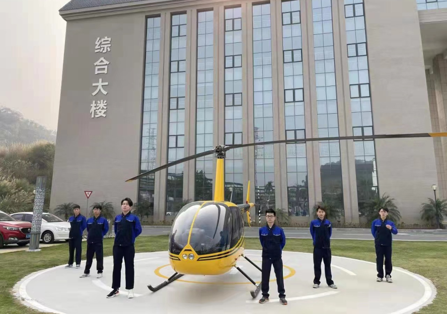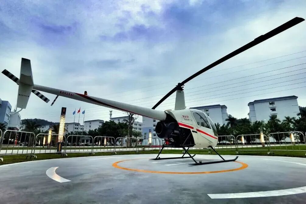 我校校本部还配有3架飞机当教学设备其中两架罗宾逊R系列直升飞机