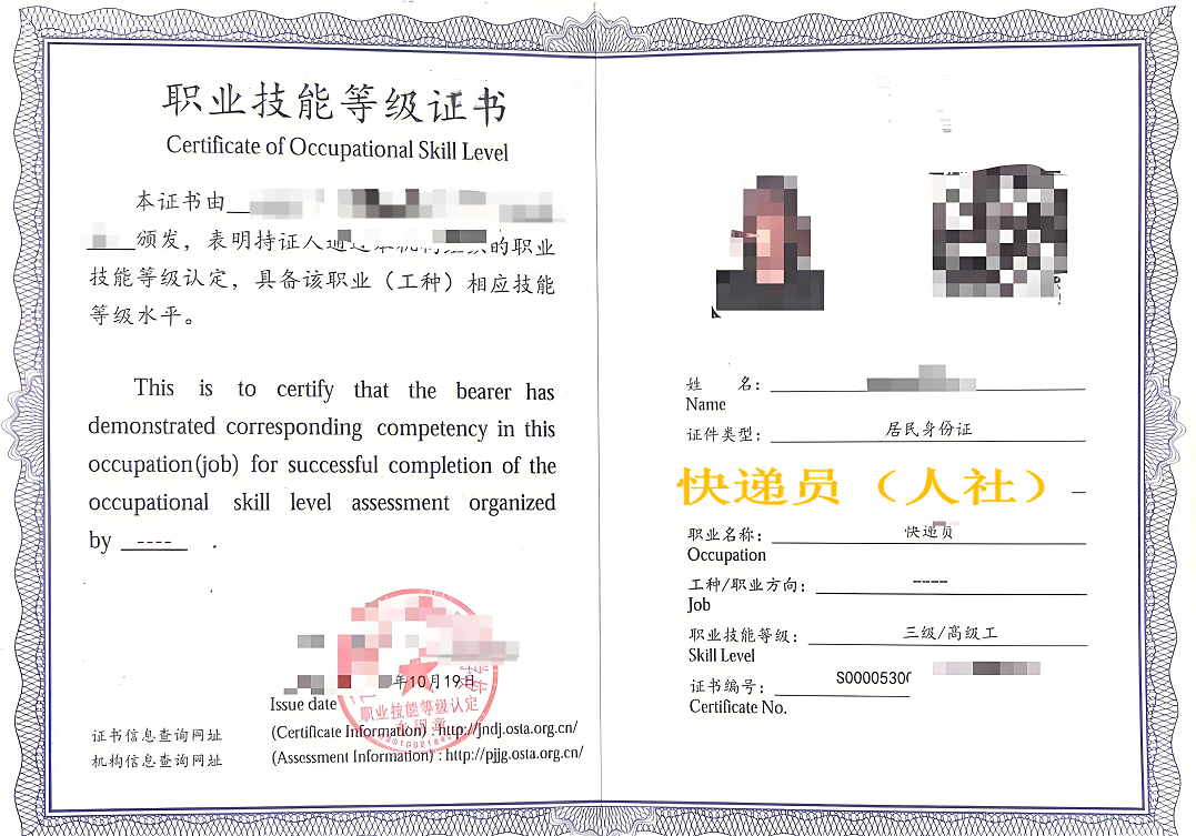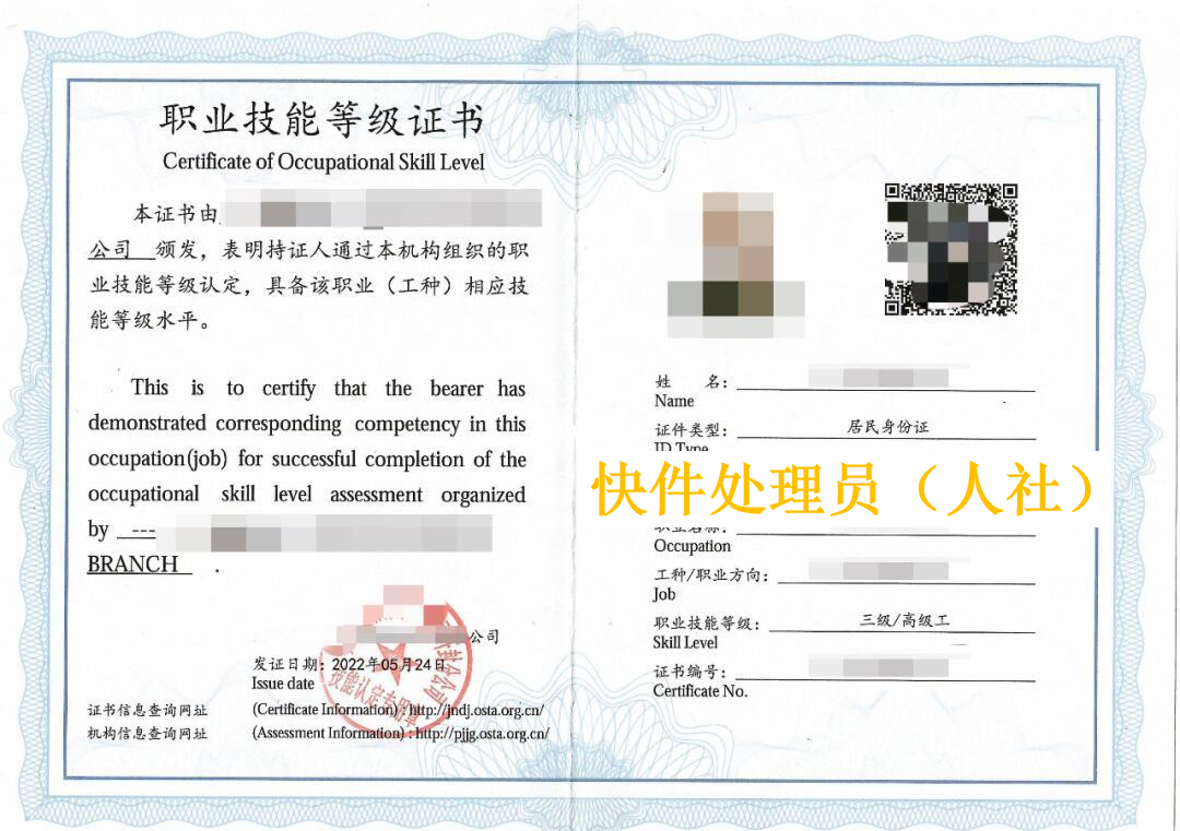 快递员职业技能等级证书(中级)、快件处理员职业技能等级证书(中级)。