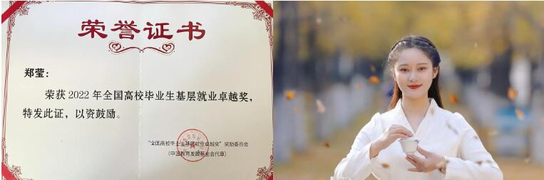 郑莹获得2022年全国高校毕业生基层就业卓越奖