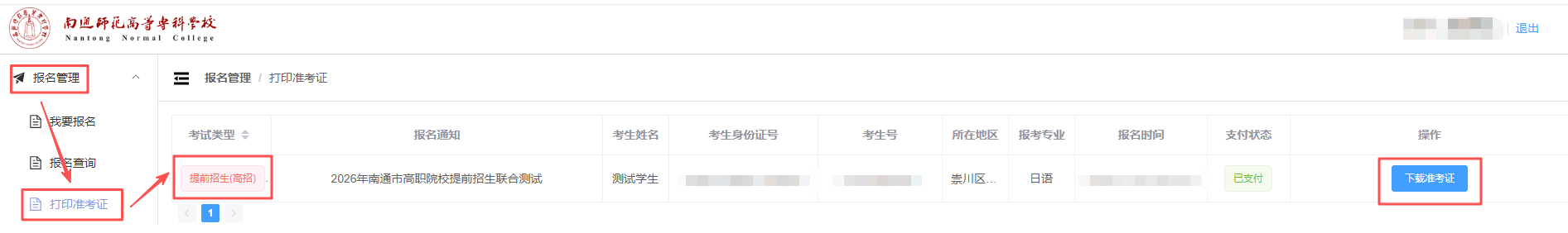 4.打印准考证