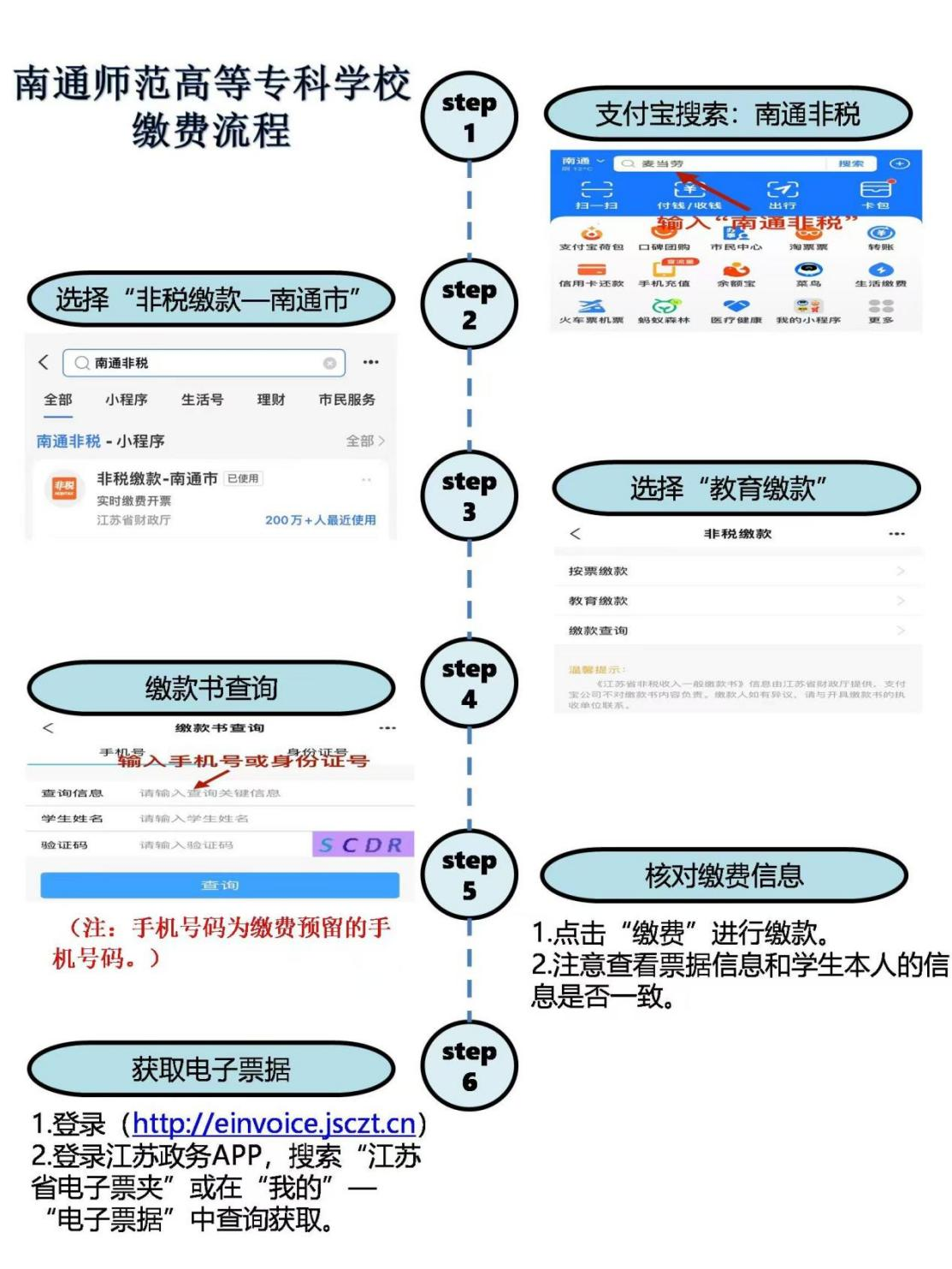 财务处将根据学生报名成功信息上传至财政收费系统,学生届时会收到江苏省统一公共支付平台发送的短信,示例如下:【江苏省统一公共支付平台】非税缴费提醒:执收单位为南通师范高等专科学校,缴款码320600250100******,金额60.00元。您可通过江苏政务服务网或苏服办APP的“统一支付”栏目,工行、农行、中行、交行、华夏、江苏、招商、邮储等手机银行APP,或支付宝的“非税缴费”相关栏目完成缴款(如已缴费,请忽略此短信)。学生可通过支付宝或按照短信提供的方式缴费,具体缴费途径详见《缴费流程图》。