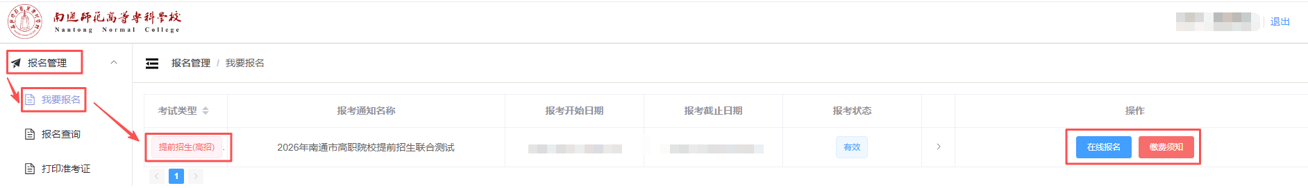点击【报名管理】-【我要报名】-【在线报名】,准确填写考生报考相关信息后,提交报名。请务必在2026年3月16日至18日12:00前完成账号注册、报名及线上缴费。