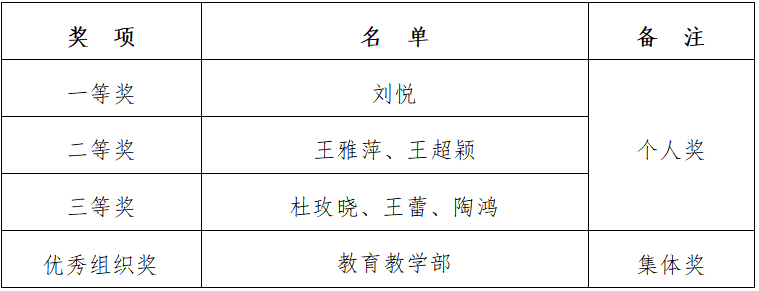 希望受表彰的同志再接再厉,再创佳绩。全体青年教师应加强学习,努力提高自身综合素质,为不断提升我校的教学质量作出新的更大的贡献。