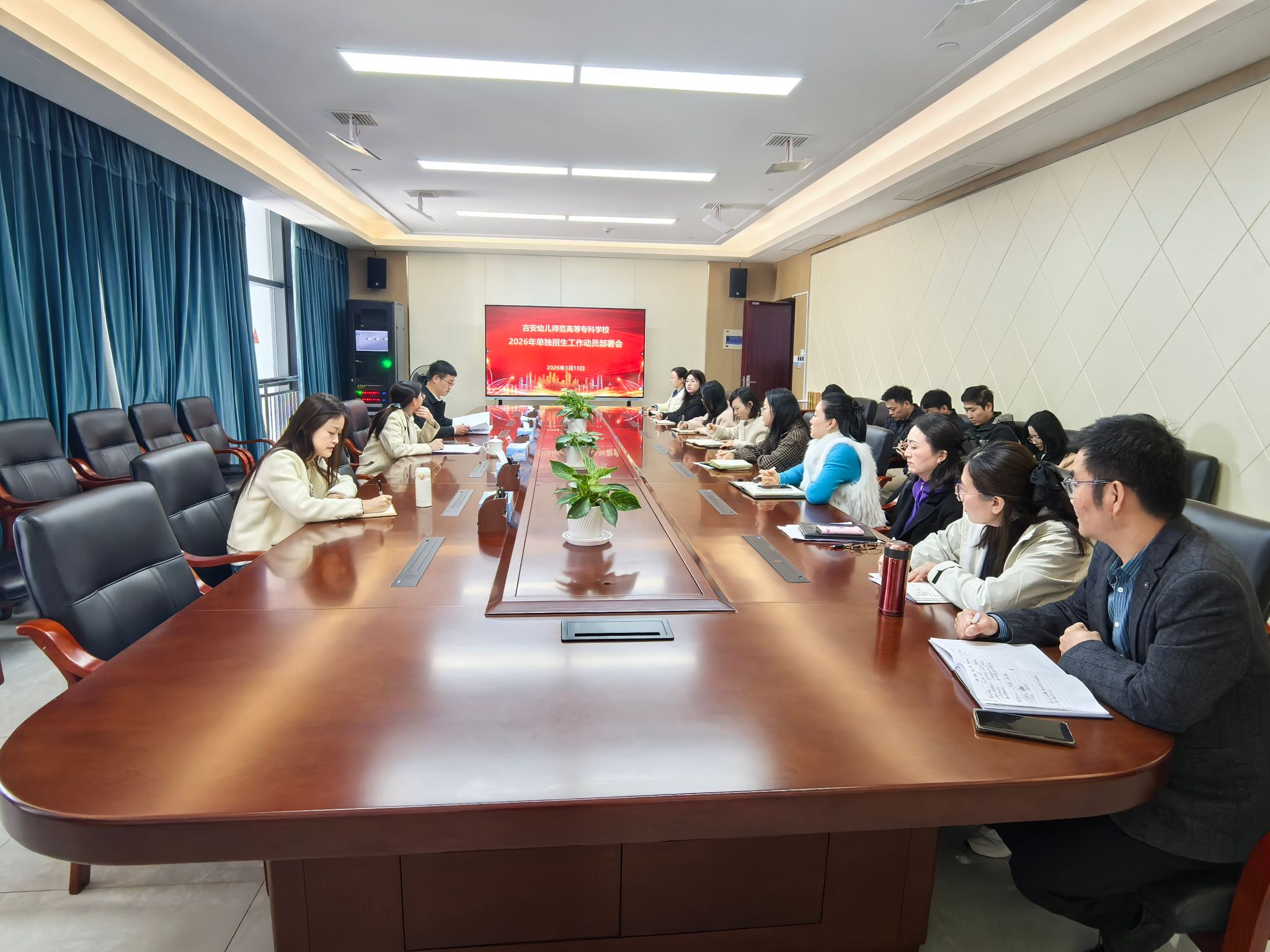 为全面贯彻落实全省2026年高职单招工作动员部署视频会议精神,进一步统一思想、压实责任、细化举措,确保我校2026年单招工作安全、规范、有序开展,3月13日,学校2026年高职单招工作动员部署会在综合楼一号会议室召开。副校长吴江出席会议并讲话,各二级学院、相关处室(部)负责同志参加会议。
