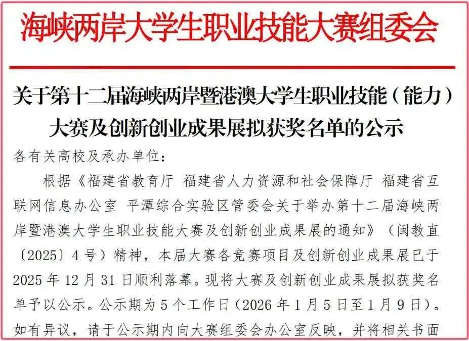 海峡两岸暨港澳大学生职业技能大赛是涵盖多学科、多领域的综合性技能竞赛,旨在推动两岸暨港澳高校之间的教育交流与合作,提升大学生的职业技能与创新实践能力。此赛项吸引了来自海峡两岸暨港澳地区110余所高校代表队同台竞技,获奖比例仅为40%。