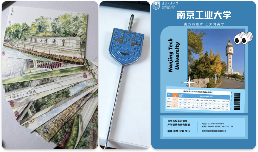 今年9月,招办将对照新生名单——凡成功考入南京工业大学的同学,可在报到当天收获招办精心准备的南工大定制专属未来明信片套装及打卡留念。