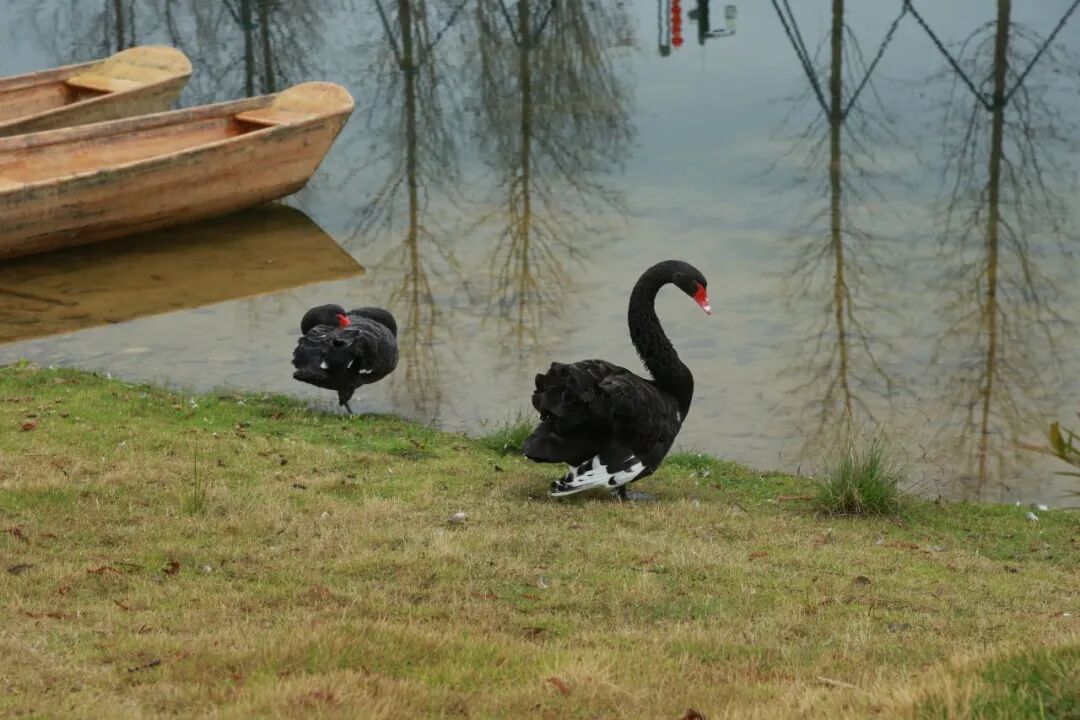 身姿绰约的黑天鹅静立于岸边