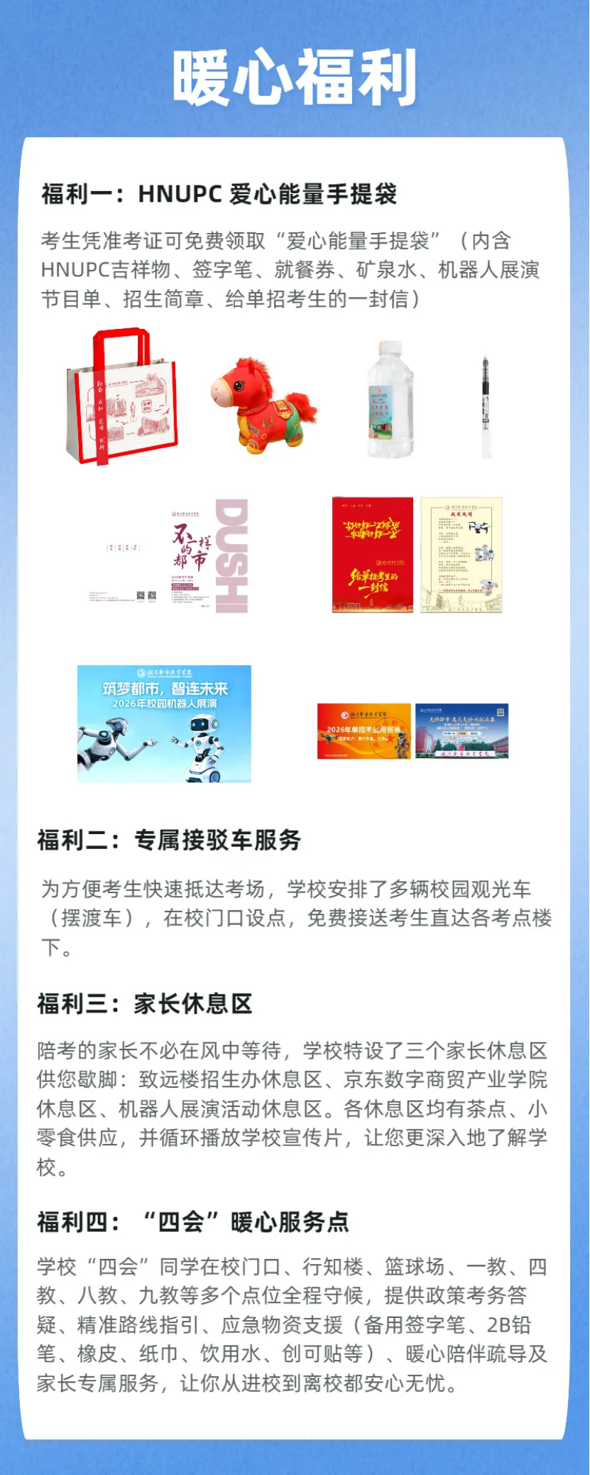 欢迎你们即将踏上这场重要的征程!为了帮助大家顺利应考,我们整理了一份超全单招考试攻略,包含关键时间节点、出行路线、精彩活动以及学校为大家准备的专属福利。攻略在手,考试不愁,快来查收吧!