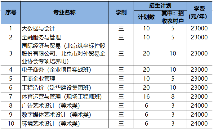 招生专业及计划