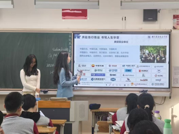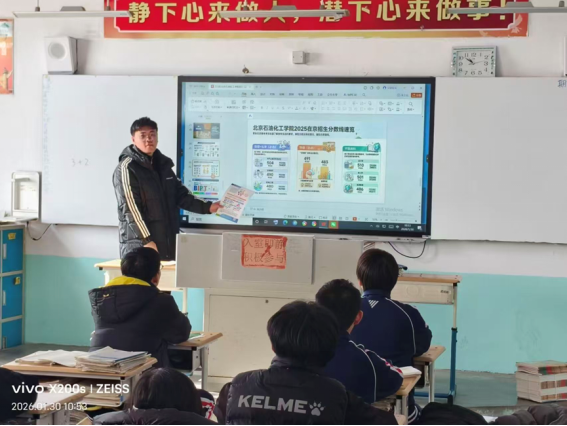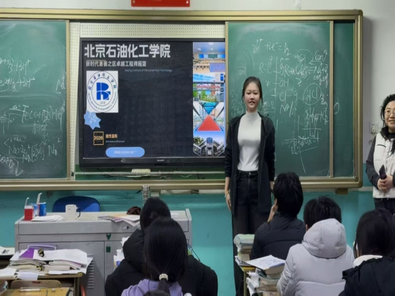 这个寒假,我随实践队回到高中母校北京市第四中学顺义分校,走进高三课堂,向学弟学妹们介绍北京石油化工学院的专业设置、校园环境与就业前景,分享自己的大学生活与成长经历。既能为大家的志愿填报提供参考,也在回望中梳理了大学四年的成长,收获满满。六月将至,祝愿每一位高三学子从容应考、金榜题名;金秋九月,都能踏入理想校园,开启人生新征程。
