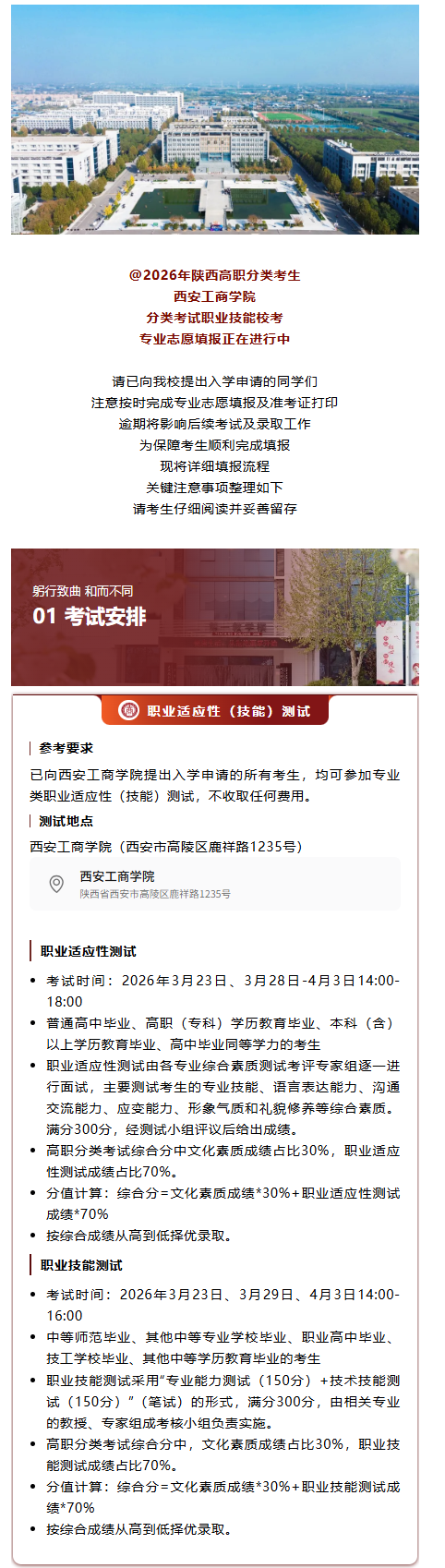 西安工商学院2026年分类考试职业技能校考报名公告(含考试安排、申报流程及专业介绍)