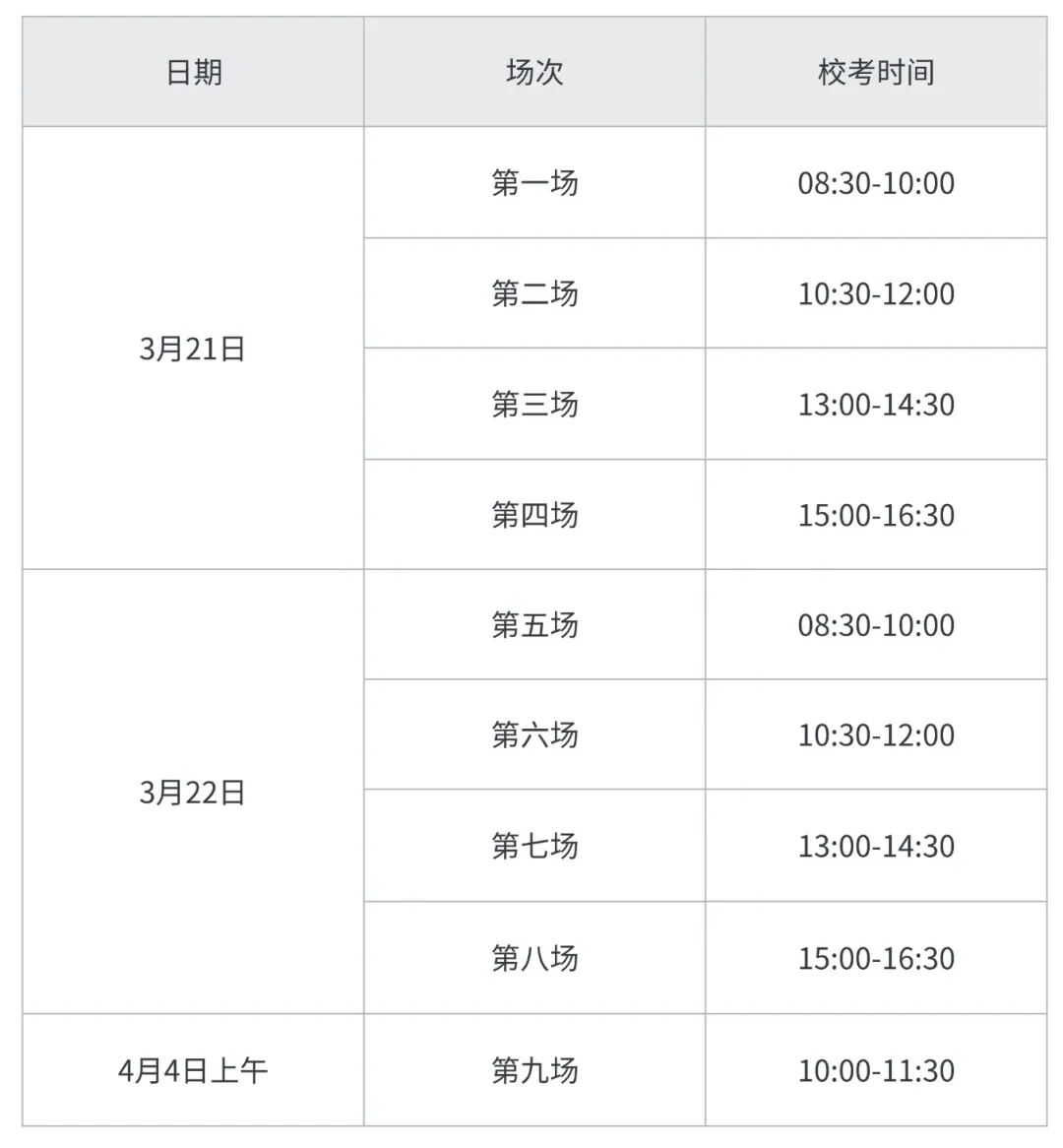 四、校考时间安排