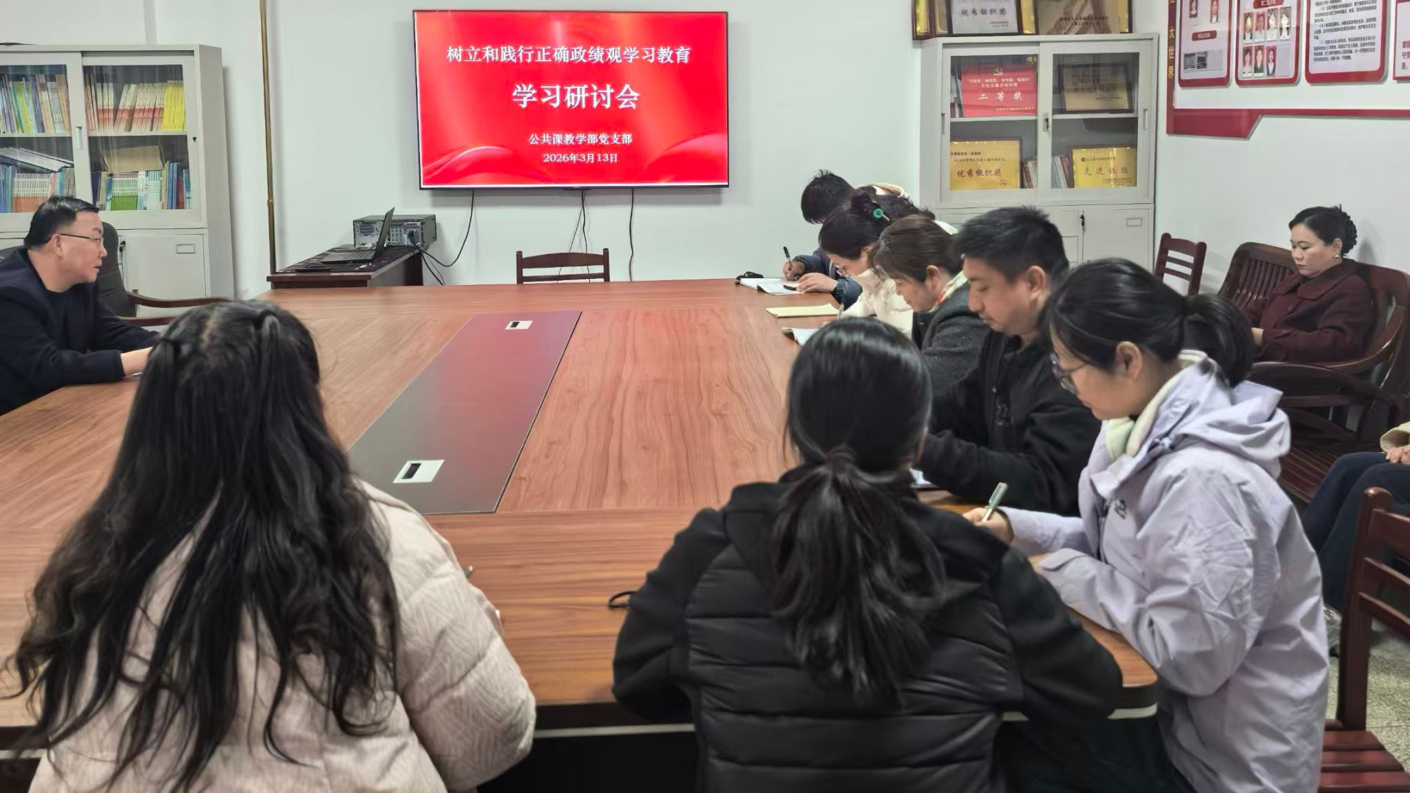 为进一步推动树立和践行正确政绩观学习教育走深走实,公共课教学部党支部继3月3日党员大会第一时间传达学院动员大会精神并启动相关工作后,于3月13日下午再次召开全体党员会议,对学习教育进行再动员、再部署。