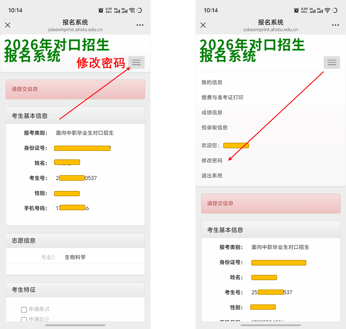 第三步:输入账号密码登录系统:账号:身份证号,密码:考生号后六位。
