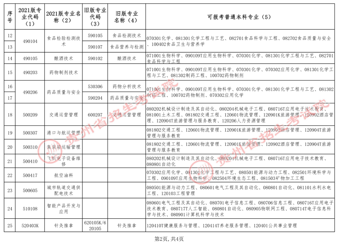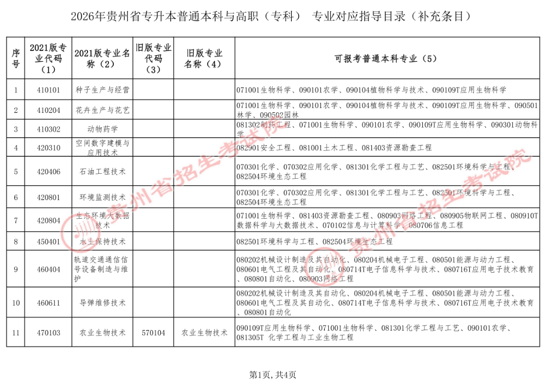 根据《教育部办公厅关于公布2026年本科层次职业教育专业设置备案结果的通知》(教职成厅函〔2026〕5号),贵州省交通职业大学2026年本科层次职业教育专业设置备案工作已完成,从2026年起开始进行专升本招生。结合我省2026年专升本考试招生报名情况,现将2026年贵州省专升本专业对应指导目录补充条目公布如下: