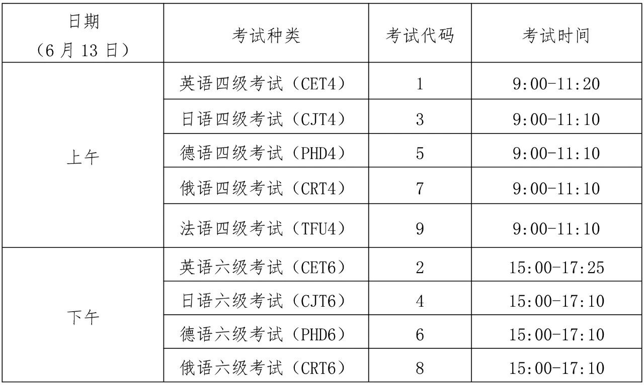笔试(CET)考试时间为2026年6月13日,开考科目为