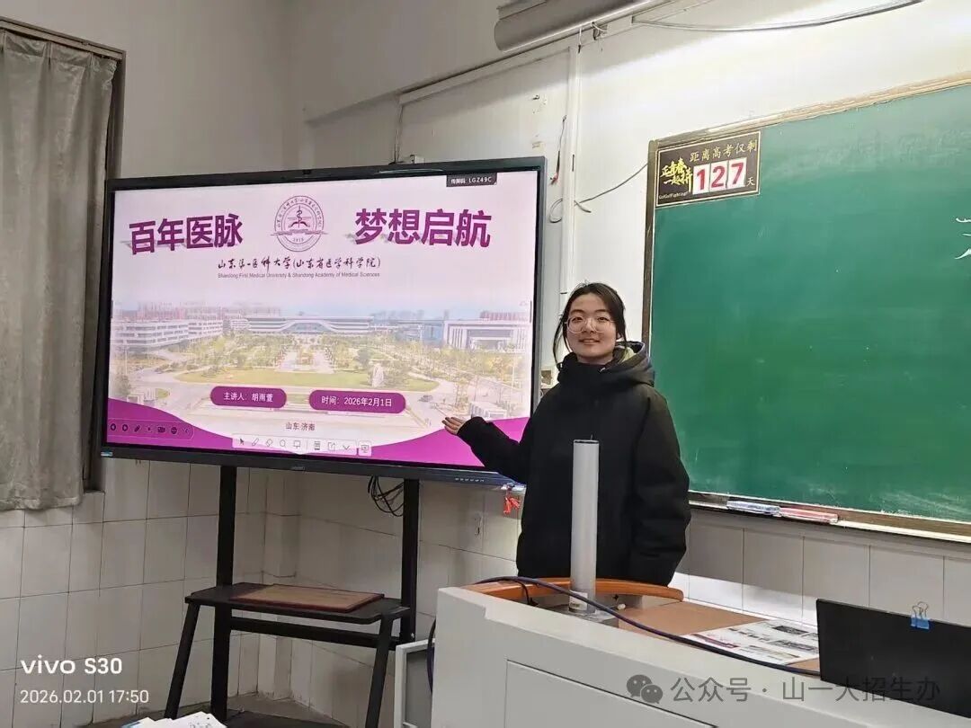 此次宣讲,最让我触动的是“传承”二字。孝感一中教会我的踏实奋进、永不言弃的精神,正是我在山一大追求医学理想的底气。而当我看到学弟学妹们认真记录笔记、积极互动交流的样子,仿佛看到了曾经的自己。我分享的不仅是山东第一医科大学的办学优势,更是一种“脚踏实地、求真务实”的人生态度——正如山一大院士在讲座中所说,“不驰于空想、不骛于虚声”,这既是对医学生的要求,也是对每一位追梦人的期许。宣讲结束后,有同学私下告诉我,我的分享让他对医学产生了浓厚兴趣,也更加明确了备考方向,这一刻我深深体会到,返校宣讲不仅搭建了高校与高中的沟通桥梁,更让奋斗精神在代代学子中传递。