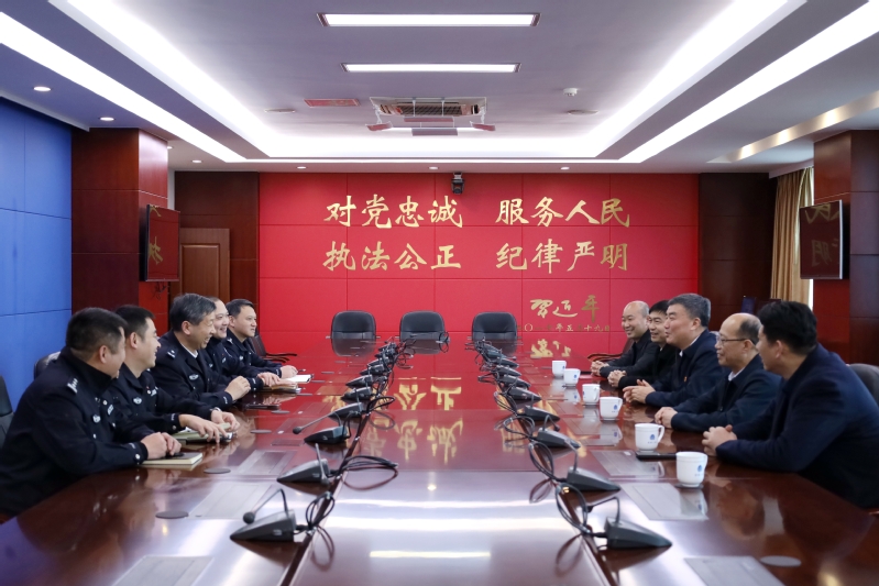 席海涛介绍了学校发展概况与校园安全工作成效,对武进公安的长期坚守与辛勤付出表示崇高敬意。他指出,我校与武进公安警校合作紧密、协同高效,联合打造“警校平安联盟”,共建“武进辅警学院”“金盾反诈”先锋宣讲团,不断健全校地联防联控机制,不仅为区域社会治理贡献了重要力量,更是校地双方共同践行正确政绩观的生动实践。学校将以现有合作成果为基石,持续深化协同共治,与武进公安携手以实干共创实绩,为打造更高水平平安校园、服务地方安全稳定发展贡献更大力量。