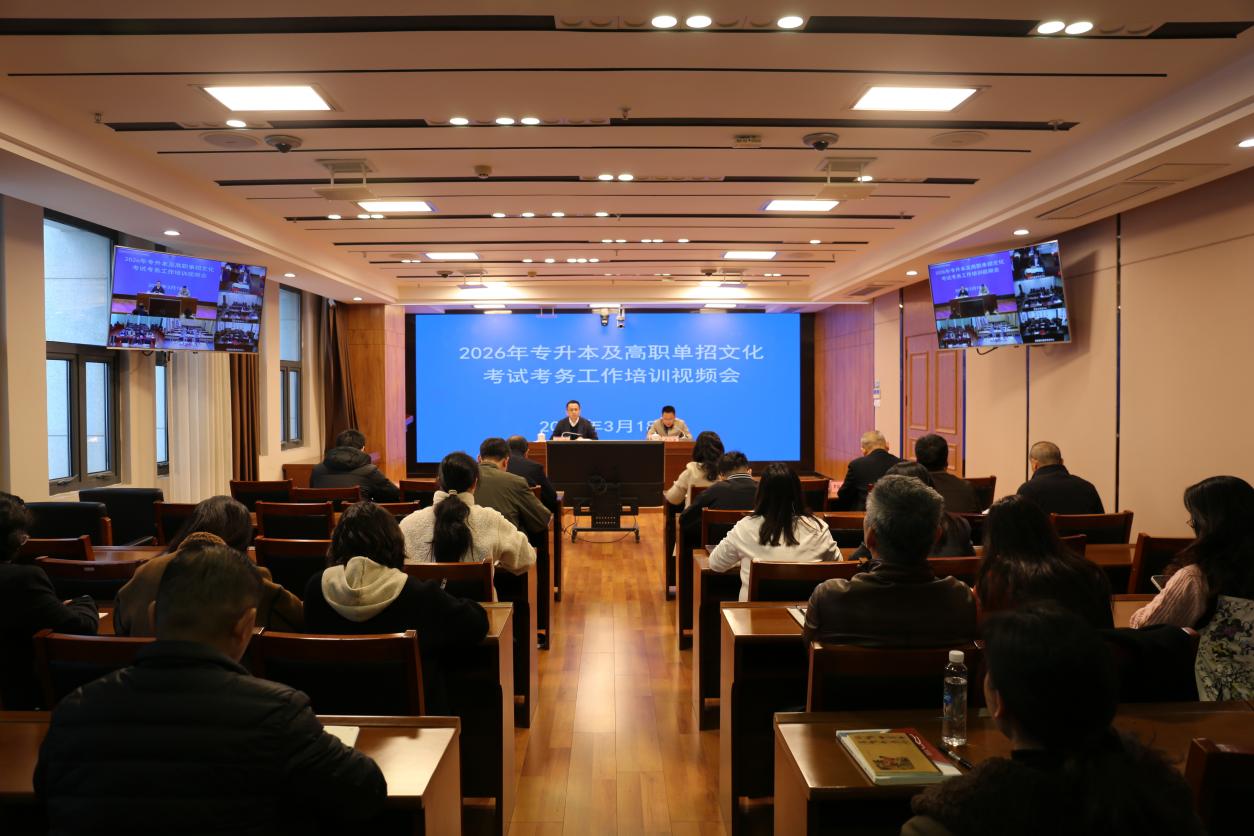 3月18日,我省召开2026年专升本及高职单招文化考试考务工作培训视频会议。省教育考试院党委副书记、院长徐峰作动员部署,省教育考试院党委委员、副院长熊礼淼主持会议。