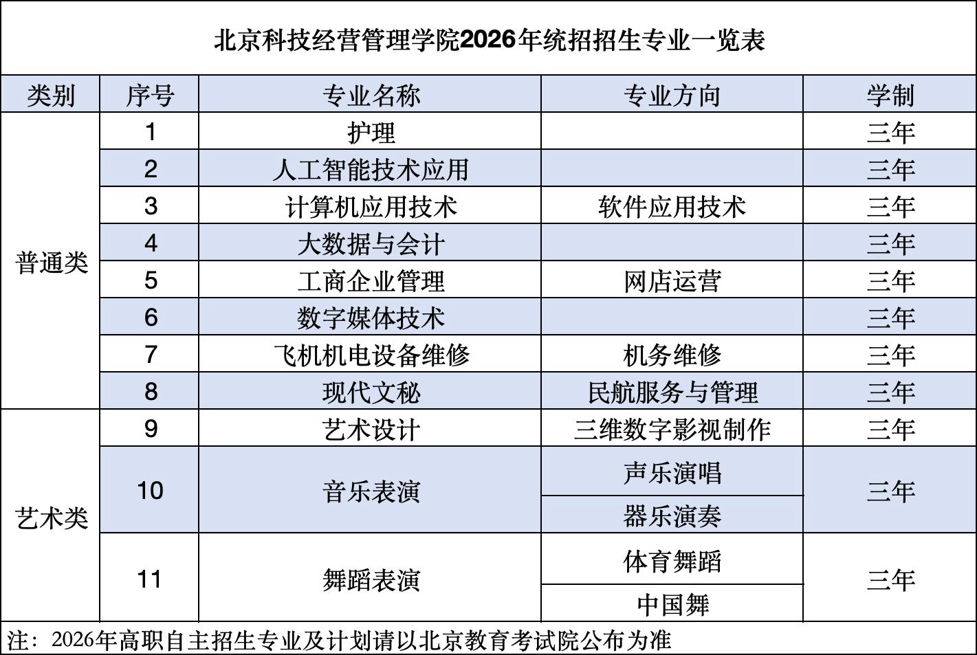 统招招生专业