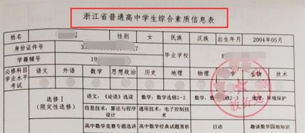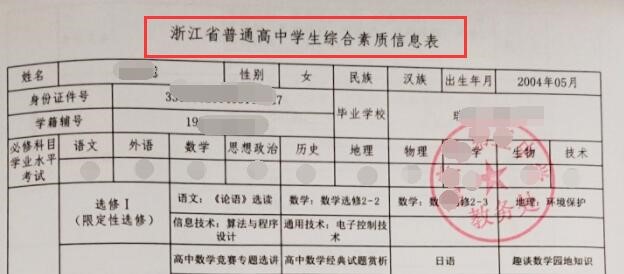 (三)加盖所在中学教务部门公章的《浙江省普通高中学生综合素质信息表》一份(网上系统下载打印)。