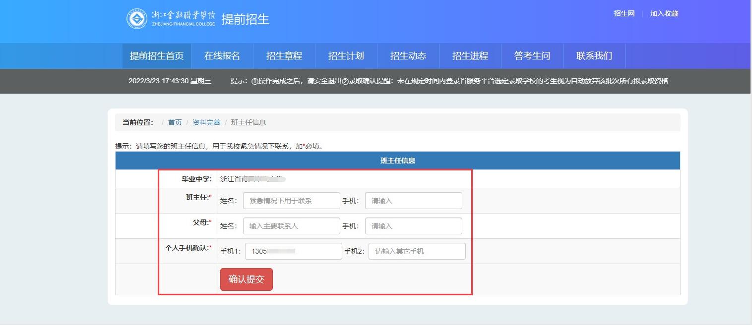 第三步:完善考生个人信息,确认提交。