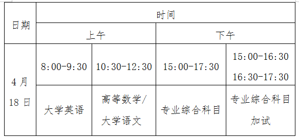 具体考试安排详见准考证。考生在4月15日至4月17日期间登录“专升本信息平台”下载准考证并自行打印,做好考前准备。