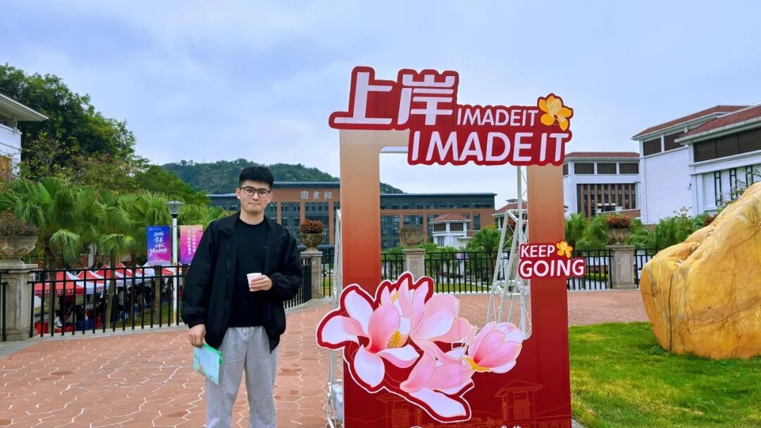 考场外的专属上岸打卡点,也为这场考试增添了满满仪式感。简洁温馨的打卡布景,承载着对每一位考生的美好祝愿,不少考生在结束考试后驻足停留,用镜头定格下这段奔赴梦想的珍贵瞬间。大家在打卡点留下身影,领取精心准备的校园文创好物,把南院的祝福与鼓励轻轻收好,让奋斗的时光多了一份温暖与纪念。