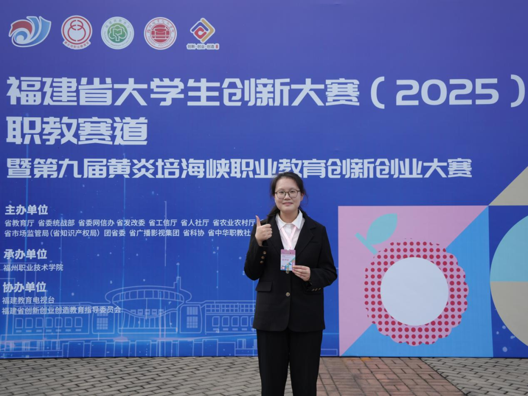 她始终专注专业学习,课堂上认真钻研、勤于思考,课后主动交流、夯实基础,学业成绩稳定优异,长期保持专业排名前三。在扎实学好专业知识的同时,她积极投身创新创业实践,连续两年参与大学生创新创业大赛均取得省级奖项。作为第一负责人参与海峡两岸女大学生创新创业大赛并斩获省级铜奖,主持1项省级立项,获得1项软著,申请2项实用新型专利,将专业知识转化为创新成果。