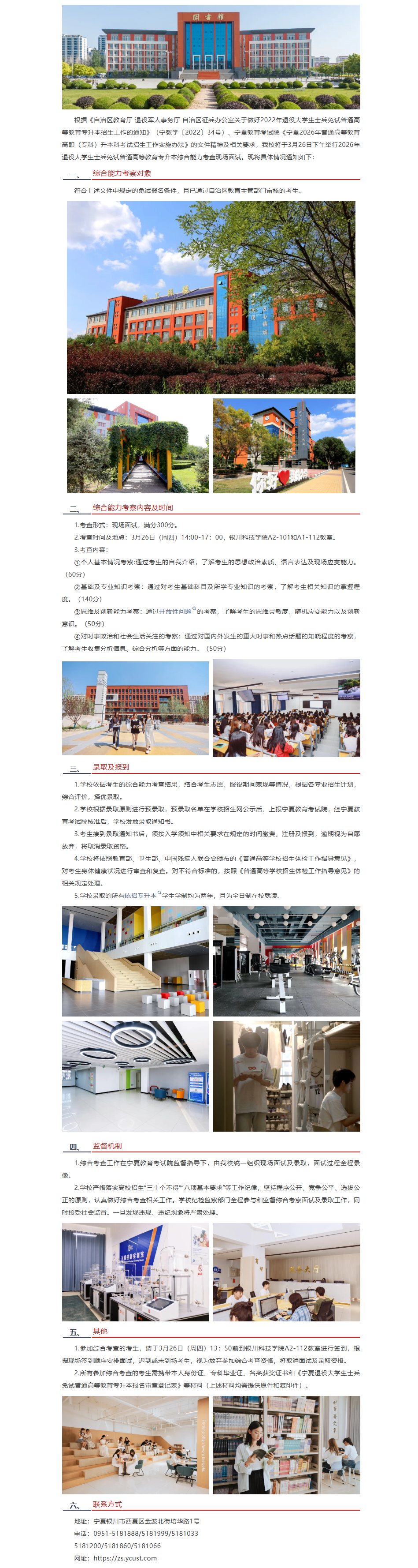 银川科技学院关于开展2026年退役大学生士兵免试专升本综合能力考查面试的通知