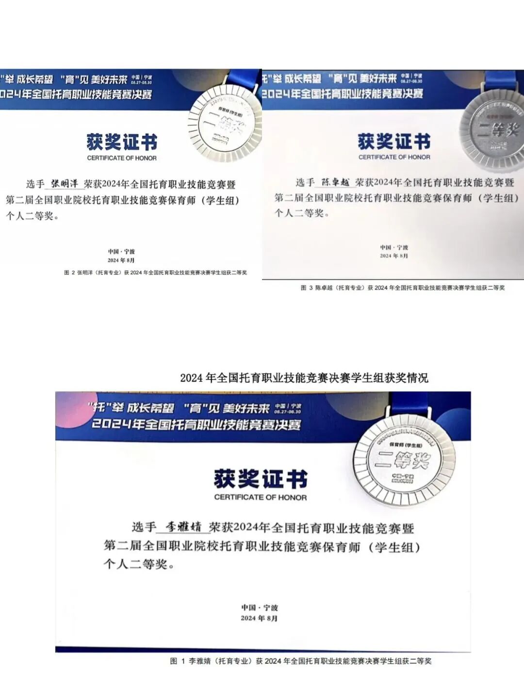 2024年在全国托育职业技能竞赛决赛中获团体二等奖,三位学生获个人二等奖。
