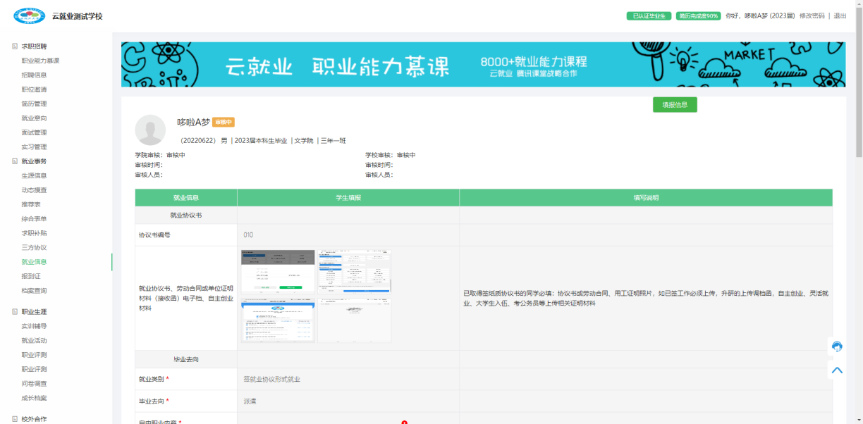 2、学生电脑端- 就业核验