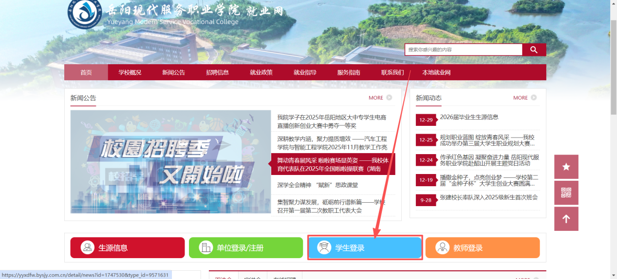 学生可点击学校就业网首页的学生登录按钮,填写登录信息进入个人中心。从右侧导航栏中选择就业信息,跳转就业信息填报页面。学生根据就业信息填报页面的字段详情填写就业信息,填写完成后,点击提交即可完成就业信息填报。