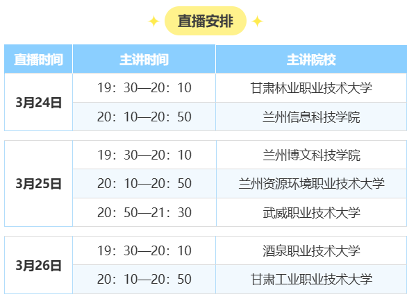 为了让大家全面、准确地掌握2026年甘肃省普通高校高职(专科)升本科招生政策,了解各招生院校的专业特色与培养方向,特别推出系列招生宣传视频直播。权威解读、院校答疑,一站式解决你的升学疑问!