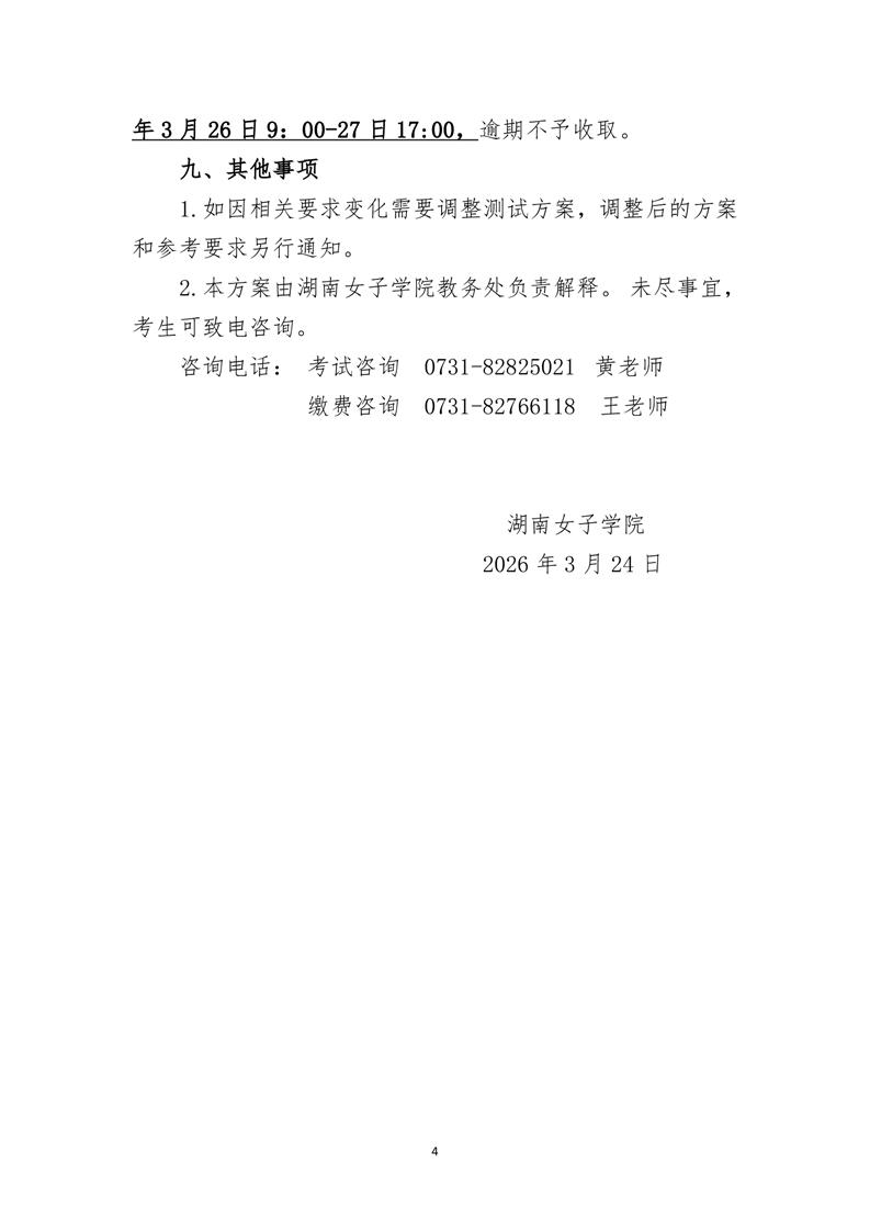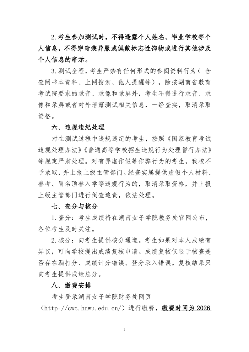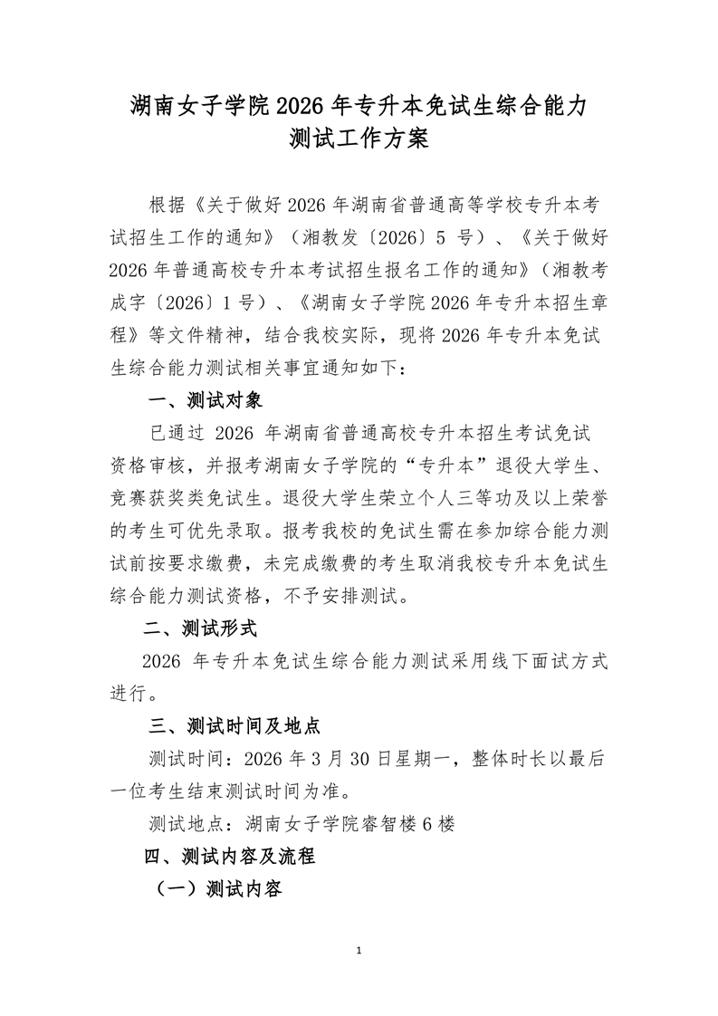 湖南女子学院2026年专升本免试生综合能力测试工作方案