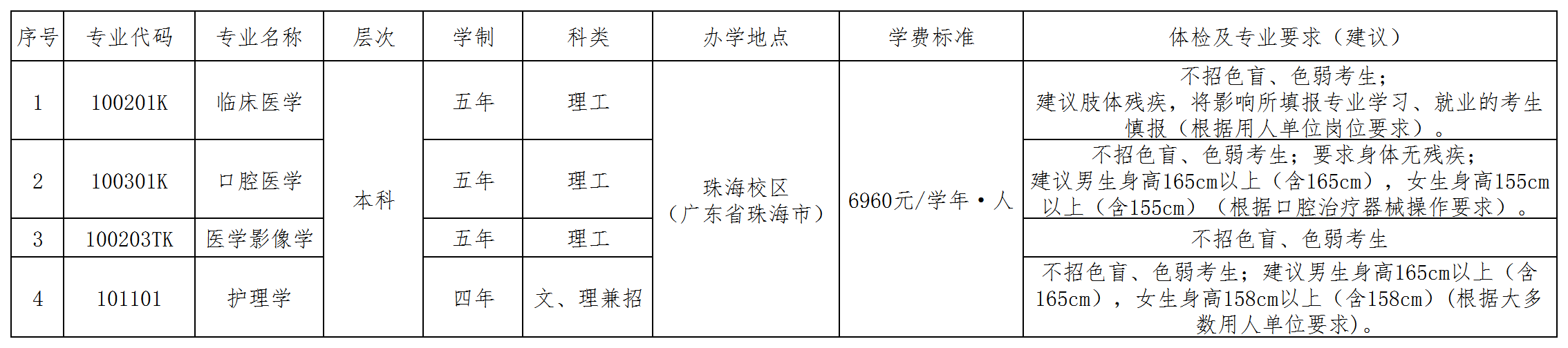 注:对于考生身体健康状况的要求,学校严格按照教育部、卫生部、中国残联联合印发的《普通高等学校招生体检工作指导意见》及有关补充规定和以上专业要求、建议执行。