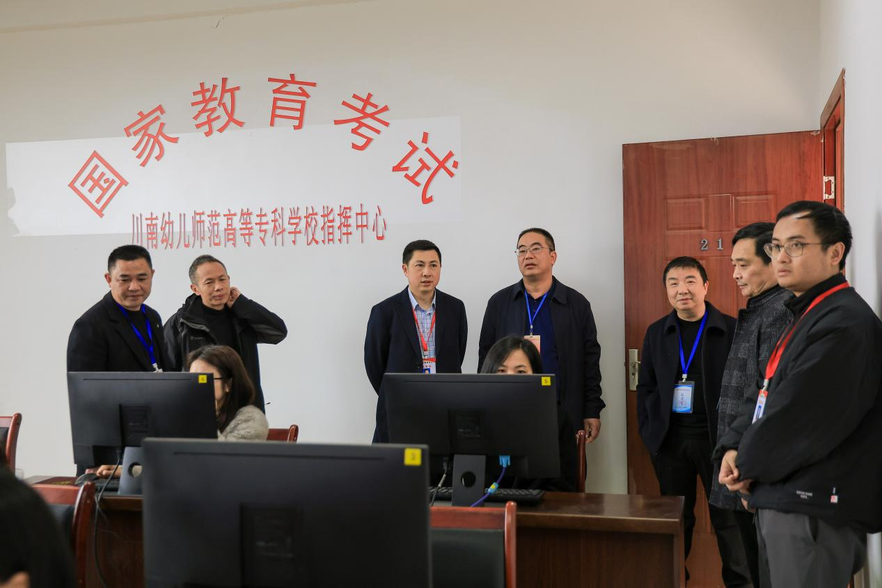 考试期间,党委副书记、校长李达军,党委委员、副校长王雪媛,内江市教育考试院院长黄传宝深入考场、监控中心、考务办公室等区域,检查考务组织、考场秩序、安全保障、后勤服务等情况,严把考试关,全力为考生营造公平、温馨、有序的应考环境。