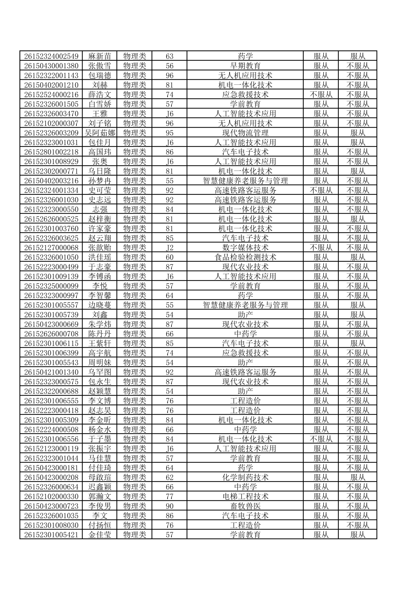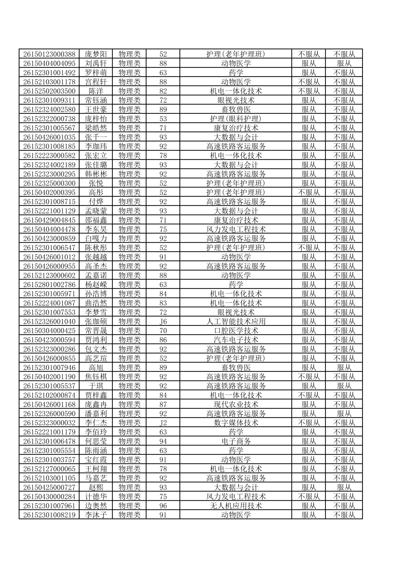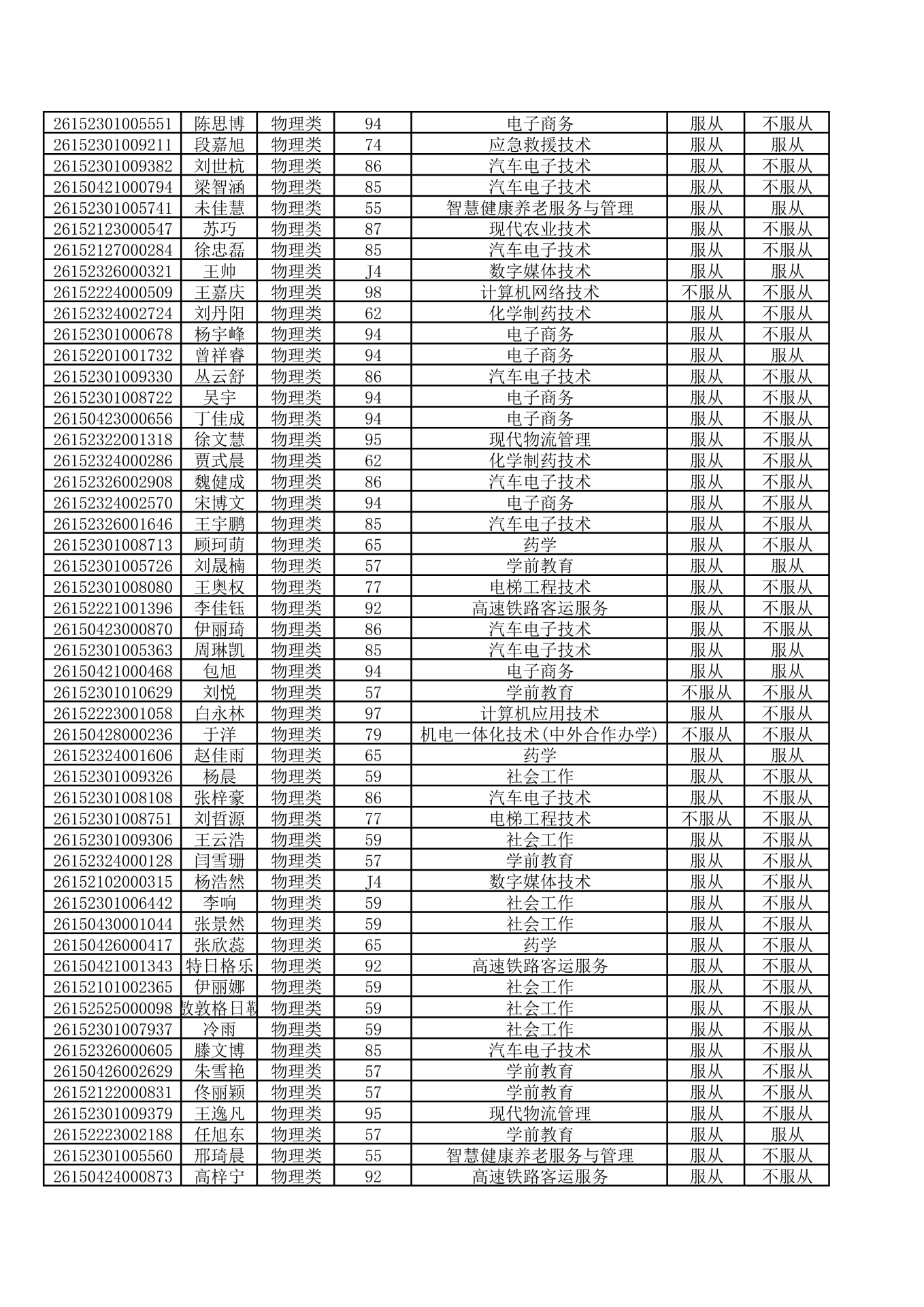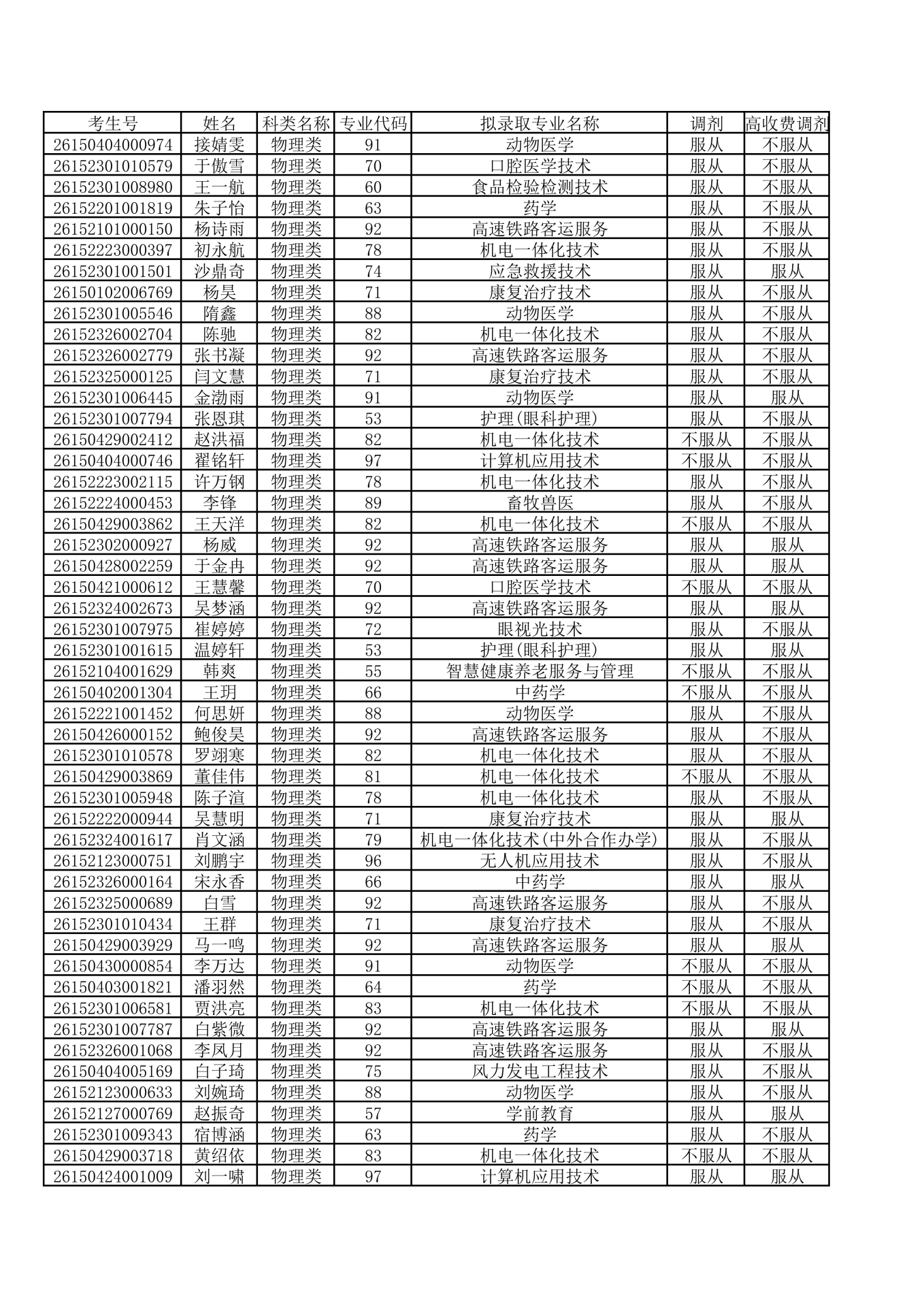 2026年通辽职业学院单独考试招生物理A类拟录取名单公示