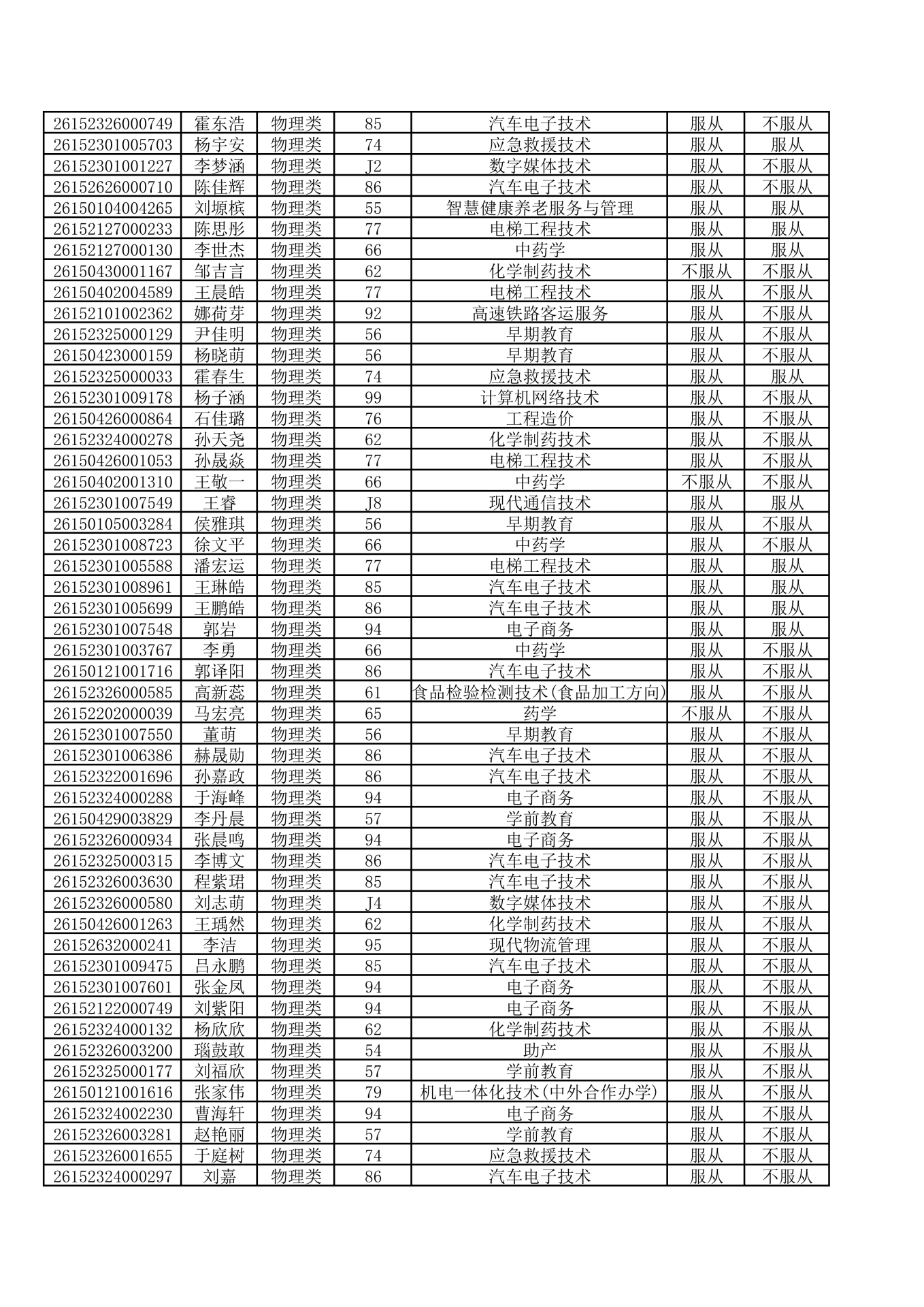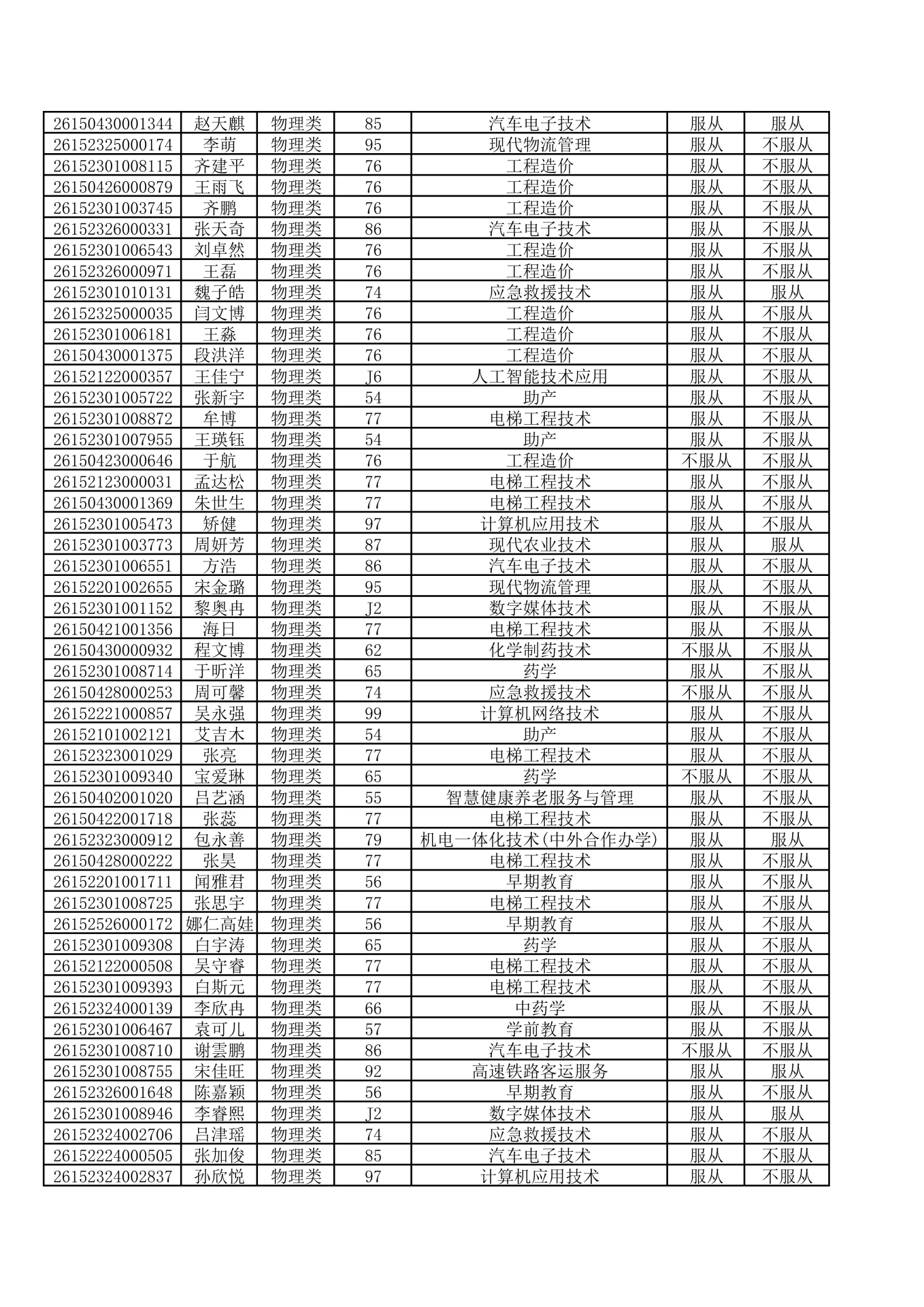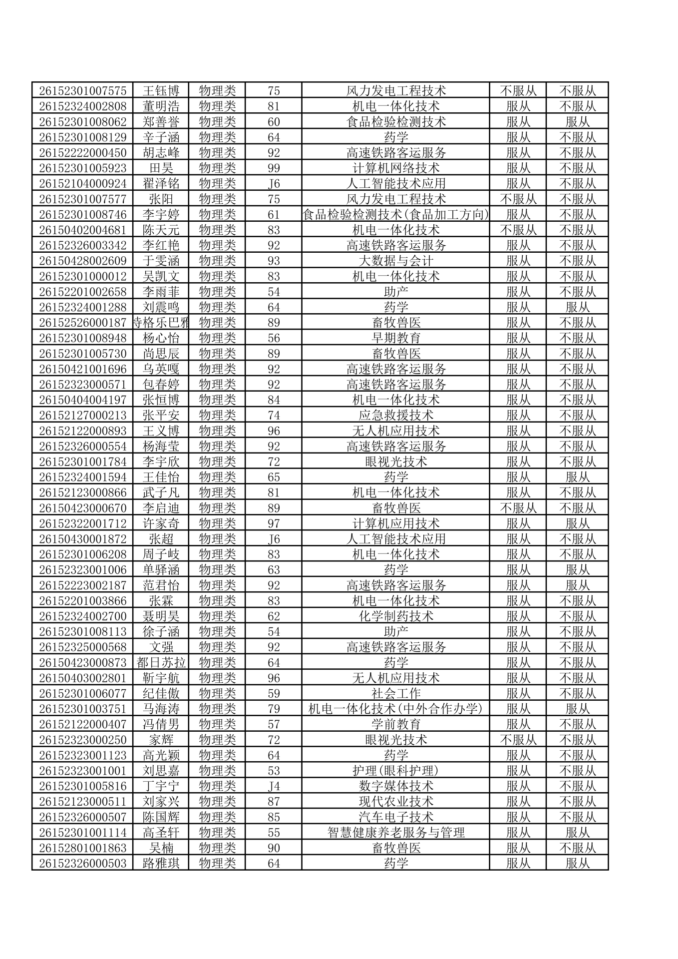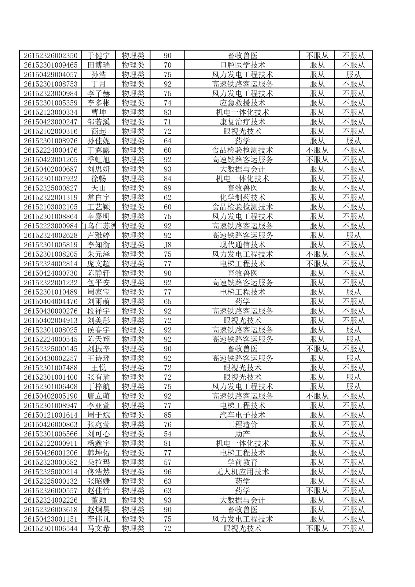 2026年通辽职业学院单独考试招生物理A类拟录取名单公示