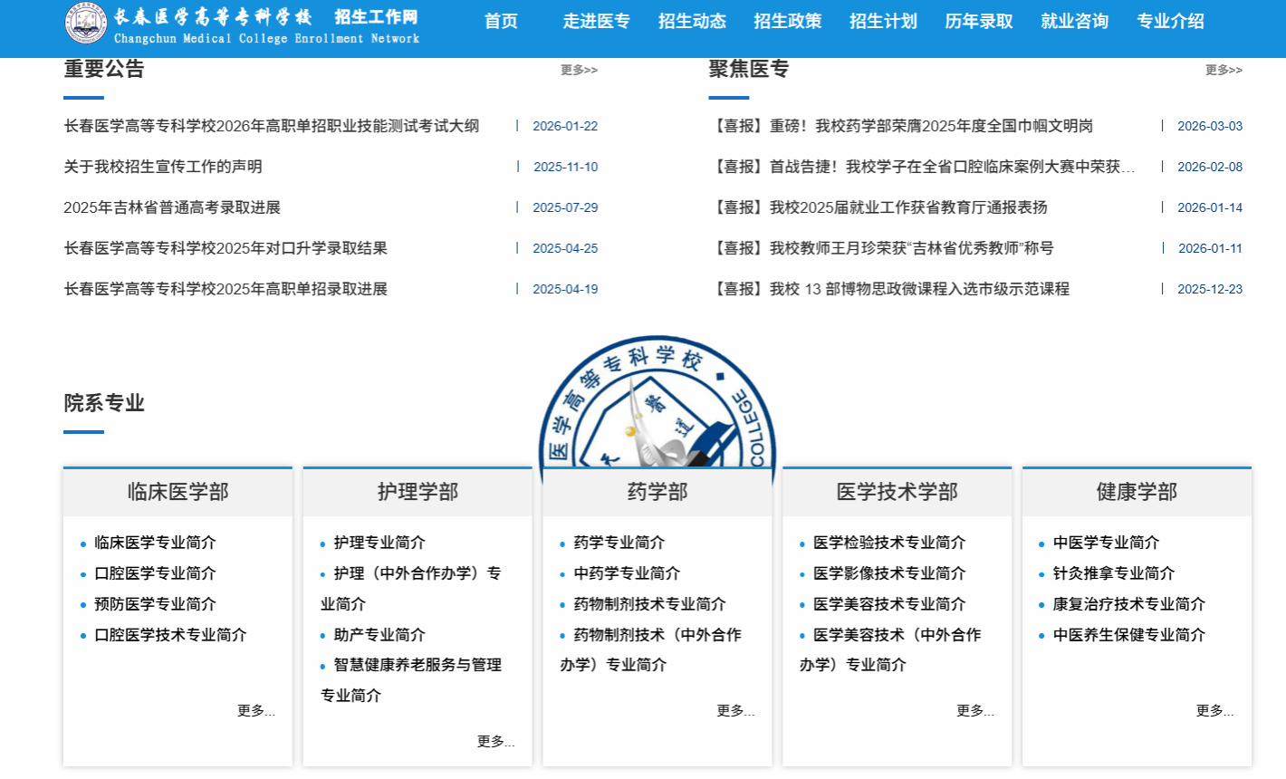 2.我校招生政策、考试大纲、招生计划、历年录取分数线及录取结果等所有权威信息,仅通过吉林省教育考试院官网、长春医学高等专科学校招生工作网官方渠道发布,请务必通过正规途径获取报考资讯,切勿向非正规组织或个人泄露个人身份信息、缴纳任何费用。
