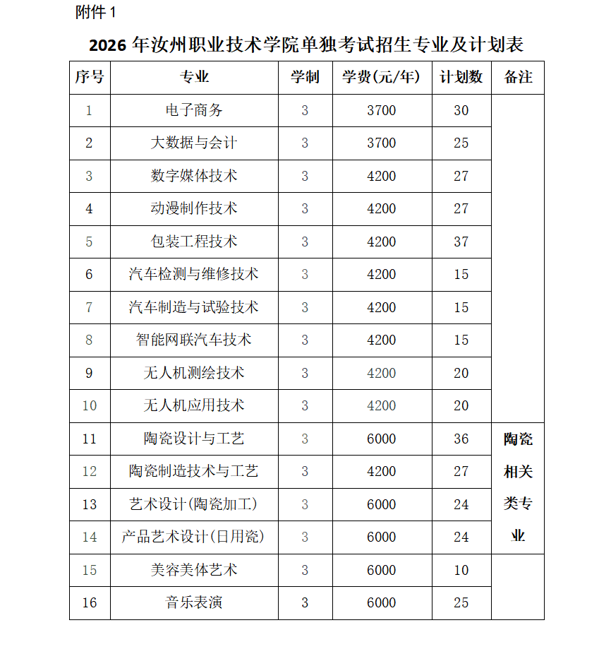 2026年学院单独考试招生专业16个,招生计划377人。具体专业设置及计划数详见附件1,学院可根据实际报名情况进行调整。