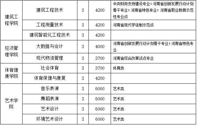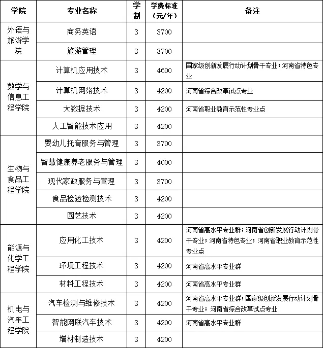 根据《河南省发展和改革委员会河南省财政厅河南省教育厅关于调整公办普通高校学费标准的通知》(豫发改收费[2020]456号)的文件精神,制定收费标准。其中,学费标准:文史类专业中智慧健康养老服务与管理、大数据与会计学费为4000元/生·年,其余专业学费为3700元/生·年;理工类专业中计算机应用技术学费为4600元/生·年,其余专业学费为4200元/生·年;艺术类专业学费6000元/生·年。住宿费标准:6人间700元/生·年,4人间800元/生·年。