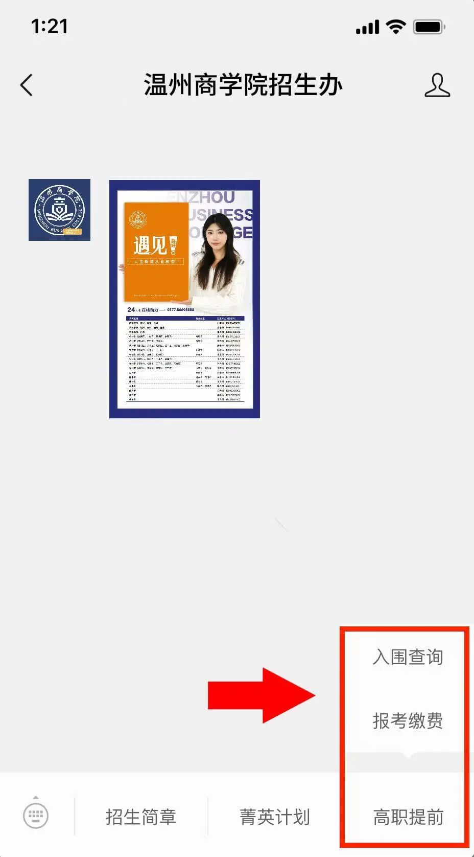 1.手机扫描下方二维码关注温州商学院招生办微信公众号