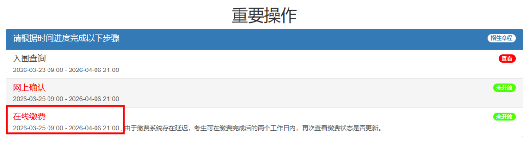 3.由于缴费系统存在延迟,缴费完成后系统仍显示“未完成”。考生无需担心,系统将会在两个工作日内更新缴费状态。