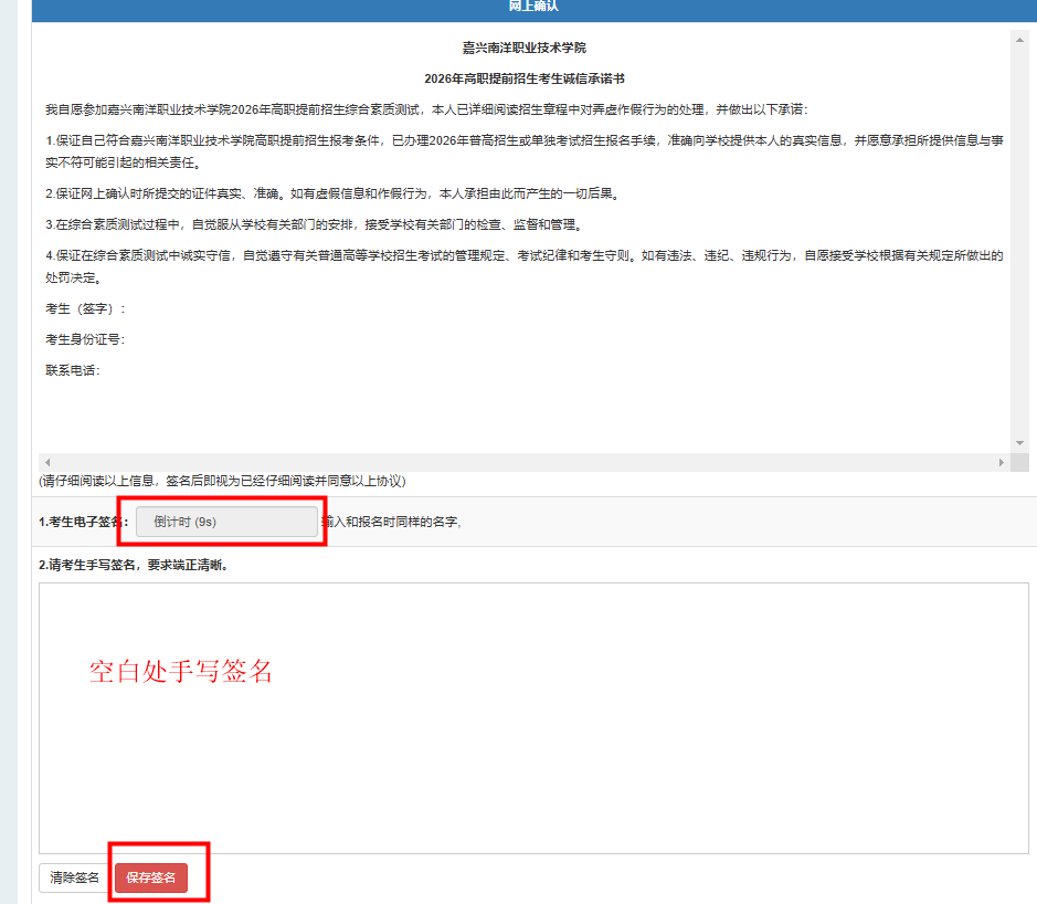 2. 网上签署《考生诚信承诺书》(电子签名和手写签名)