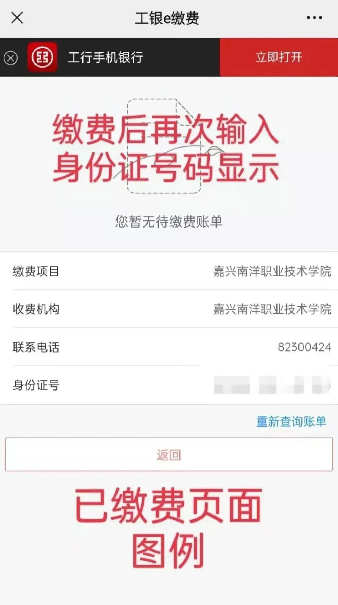 4.缴费后再次输入身份证号码查询,如下图所示代表缴费成功